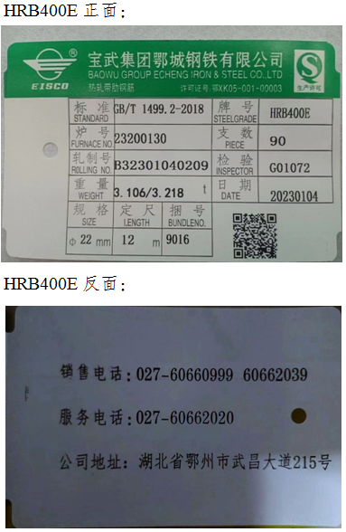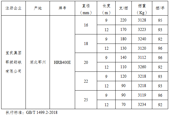 一、同意宝武集团鄂城钢铁有限公司“鄂钢”牌热轧带肋钢筋HRB400E牌号产品在我所注册。
